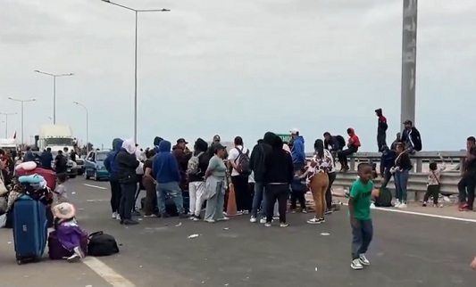 Esto generó que varios de los migrantes, que iban a pie, bloquearan la carretera Panamericana Sur y el paso fronterizo, lo que hizo que se forme una larga fila de camiones y autobuses en ambos lados de la frontera.
