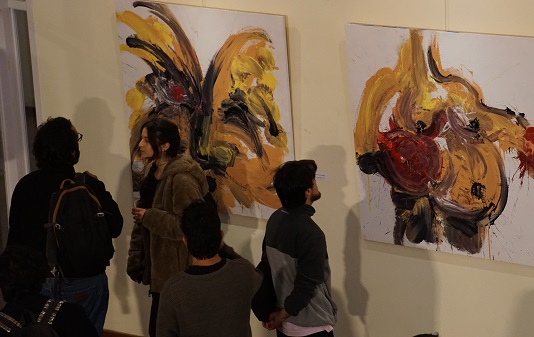 “Esta muestra es un trabajo que cuadro a cuadro va estableciendo hitos conceptuales desde los que se proyecta una viscosa representación del mundo, un mundo que arbitrariamente estira y deforma sus gestos y momentos hasta exprimir y quebrantar lo poco que creemos nuestro. De ahí que la paleta de colores, como en la oscilación de un péndulo, recorre desde los tenues grises hasta los irónicos escarlatas, siendo un extremo y otro las barreras de un mismo tormento, las cuerdas de un mismo ring” comenta el artista visual Fabio Lazcano.